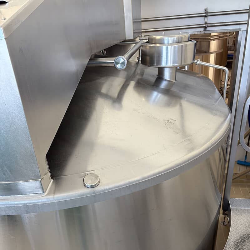 Construction tout inox garantissant hygiène irréprochable et durabilité. Idéale pour la production fromagère artisanale ou industrielle de moyenne capacité.